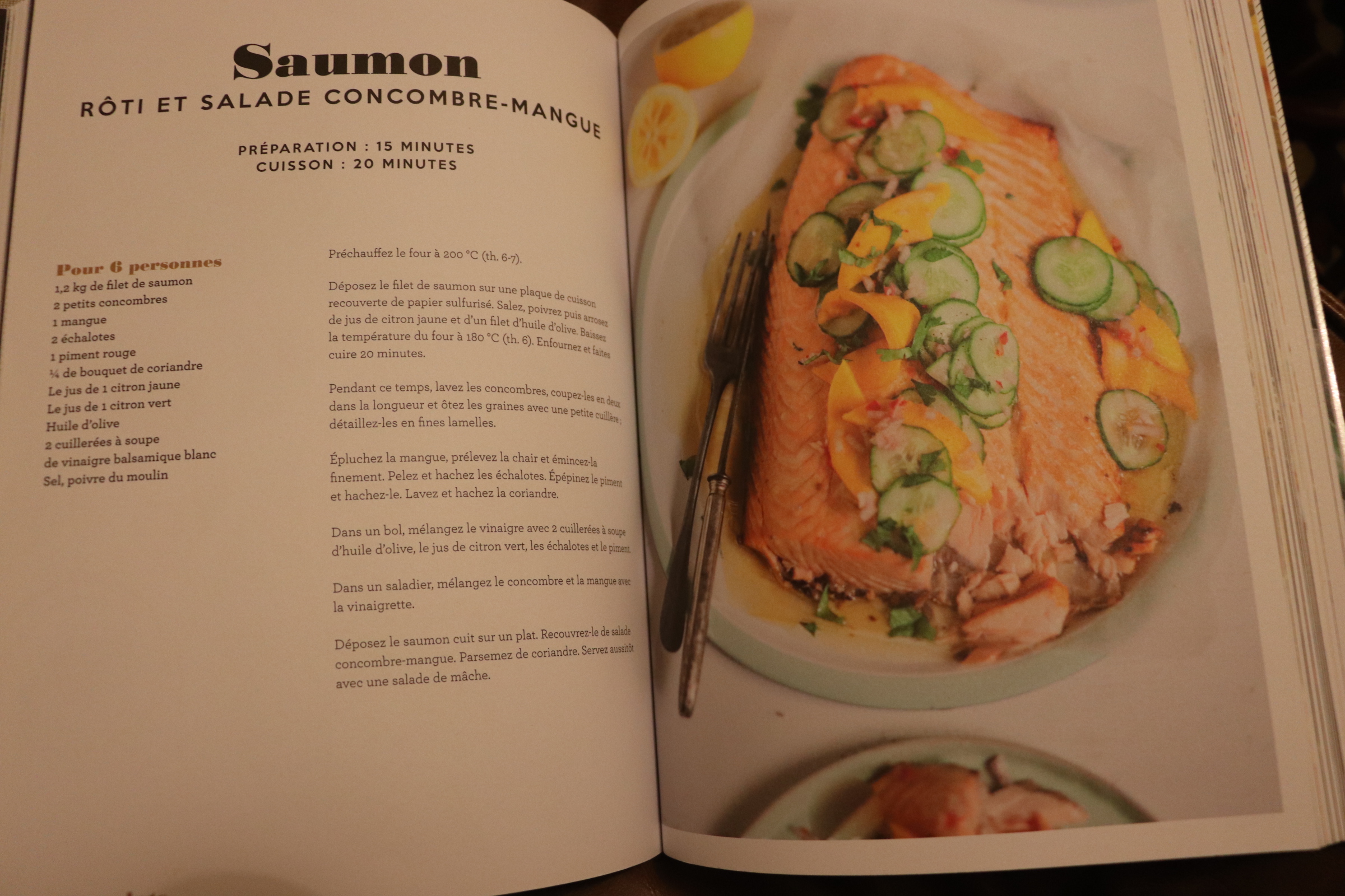 saumon rôti et salade concombre mangue